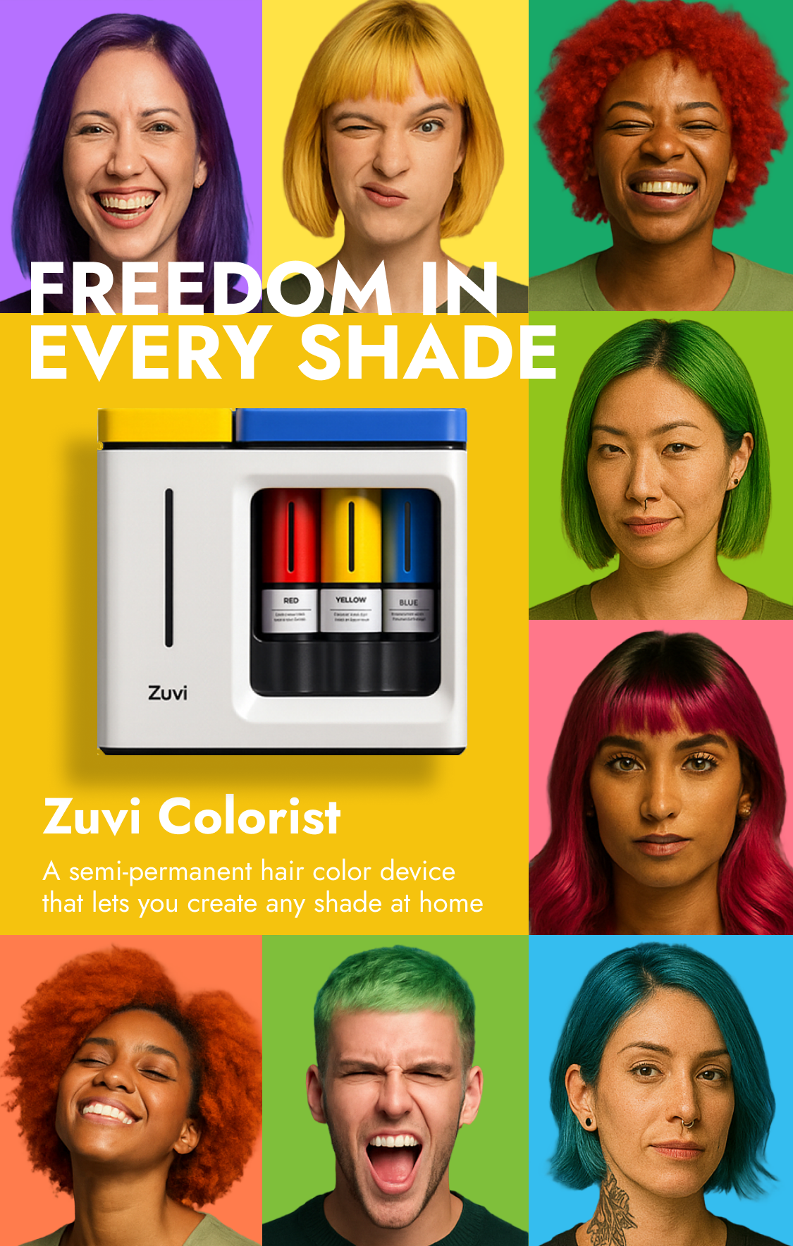 Snap a photo, tap a color, and Zuvi Colorist turns it into your perfect hair shade. From art to selfies to random street signs — anything can spark your next look.